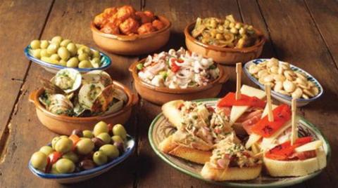 Patatas bravas (khoai tây giầm nước sốt cà chua cay), calamares fritos (mực rán), boquerones (cá cơm), croquetas de jamon (thịt viên giămbông), chorizo (xúc xích thịt lợn), pimientos asados (ớt xào), albondigas (viên thịt) và berenjenas gratinadas (cà tím nướng pho mát) chỉ là một số ví dụ thơm ngon về tapas - các món ăn nhẹ của Tây Ban Nha.