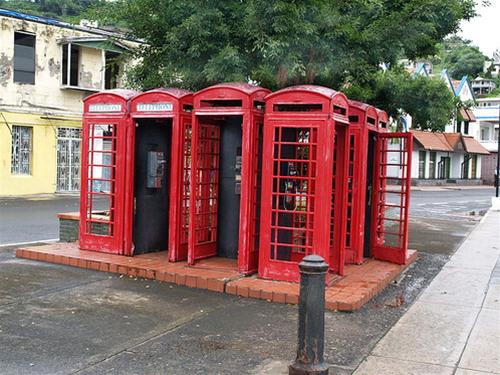 | Cũng không hiếm để bắt gặp những "ký ức" nằm chỏng chơ như thế này về một quá khứ thuộc địa của Grenada. Sáu buồng điện thoại công cộng này hiện không còn sử dụng được |