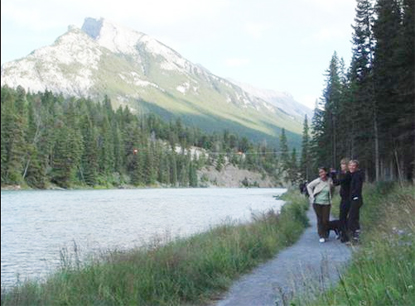 Điều đặc biệt tại các sông, hồ trên dãy Rocky Mountain là toàn bộ nước có màu xanh ngọc bích tuyệt đẹp. Đi dạo dọc bờ sông trong cái lạnh khoảng 15oC thật sảng khoái và thú vị… Không khí thật trong lành và mát mẻ. Thỉnh thoảng lại có những bảng cung cấp thông tin về các loài hoa, thú… trong rừng cho du khách dọc bờ sông. Những chiếc ghế được đặt dọc bờ sông thật lý tưởng cho một phút dừng chân ngắm cảnh và đọc sách.