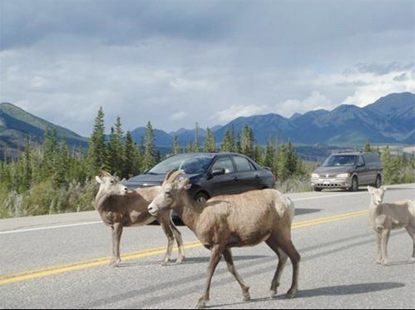 Khi tông chúng, nếu may mắn bạn sẽ sống sót, hoặc không thì xe cũng tan tành, kể cả xe tải hạng nặng. Vì thế, đoạn đường chúng tôi đi qua thật vui nhộn do các con cừu núi “làm trời làm đất” đi lững thững, ung dung trên đường cao tốc, mặc cho cả đoàn xe dài cả trăm mét đang đứng chờ. Thỉnh thoảng chúng dừng lại quan sát mọi người rồi lừng lững đi tiếp. Du khách cũng không đi vội, dừng lại để chụp hình và thưởng thức“ cảnh không phải lúc nào cũng thấy”.