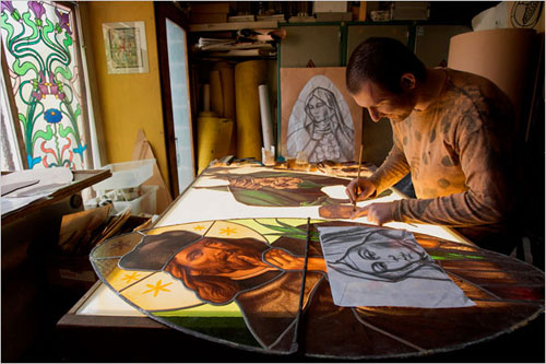 Người họa sĩ đang hoàn thành những tấm kính màu cho nhà thờ St. Vitus. |
