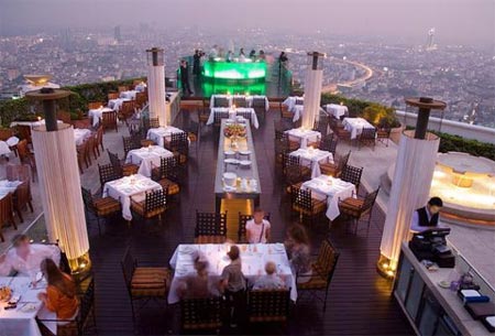 | Ở độ cao 247 m trên đỉnh State Tower tại Bangkok, Thái Lan, là quán bar Sirocco. |