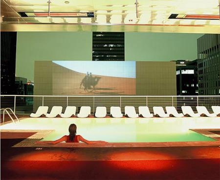 | Du khách còn được thưởng thức hồ bơi, các buổi chơi nhạc sống và phim chiếu trên nền của tòa nhà đối diện. |