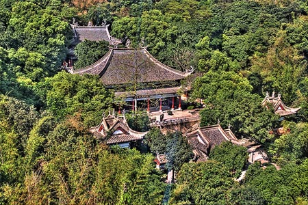 | Một ngôi chùa nằm giữa lưng chừng núi Bạch Vân. |