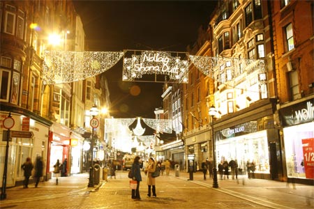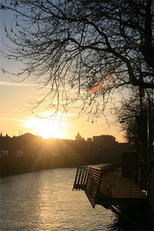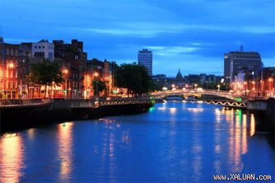 Dòng sông Liffey chảy qua trung tâm Dublin rực rỡ ánh đèn đêm, khu trung tâm mua sắm sang trọng. Độc giả Anh Son Nguyen, du học sinh ở Ireland, chia sẻ hình ảnh Dublin những ngày đầu năm