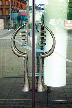 Một phần quan trọng khác ở phía ngoài công trình cũng gây được ấn tượng mạnh mẽ, chính là hàng chữ lớn khắc ở phía trước phần mái vòm, ngay trên lối vào chính của công trình – hai câu thơ được viết bằng hai thứ tiếng (tiếng Anh và tiếng Xento – ngôn ngữ riêng của xứ Wales). Cách thức viết chữ trên lối vào của công trình là một phong cách khá cổ điển và truyền thống, tuy nhiên trong công trình này nó đã được kiến trúc sư phục hồi và sử dụng dưới một cách nhìn nhận hiện đại. Mỗi chữ cái cao hơn 2m cũng chính là những cửa sổ để du khách đứng ở khu vực giải lao phía trong có thể nhìn ra phong cảnh ngoài vịnh Cardiff.