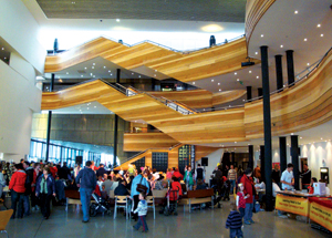 | Khoảng không đệm dẫn tới các phòng biểu diễn cũng là nơi tổ chức các sự kiện hay những sân khấu nghệ thuật nhỏ dành cho thiếu nhi. Thang dành cho khán giả vào các phòng biểu diễn | |