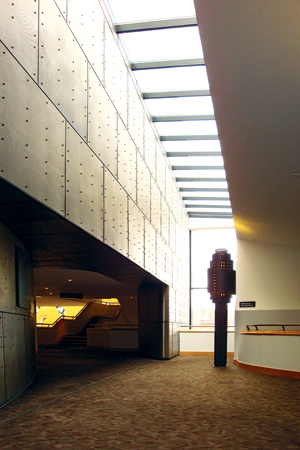 Ở một số điểm, các lớp đá được tách ra bởi những dải băng kính, cho phép ánh sáng tự nhiên chiếu vào trong nội thất công trình. Những băng kính này dày 15cm, được chế tạo bằng cách gập các lá kính dưới nhiệt độ nóng chảy để tạo thành những khối kính vững chắc.