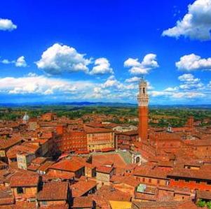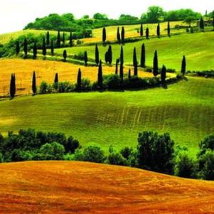 Xe buýt từ Florence đến Siena lướt thật êm trên con đường nhỏ uốn quanh những ngọn đồi trập trùng. Vô số những lâu đài cổ, các điền trang, những ngôi nhà bằng đá có vườn nho xung quanh lần lượt hiện ra trước mắt. Thỉnh thoảng nổi bật lên giữa cánh đồng lúa mì trải dài tít tắp là những hàng cây trắc bá diệp cao nhọn, tô điểm cho phong cảnh đặc trưng của Tuscany.
