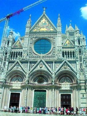 Niềm kiêu hãnh lớn nhất của Siena là nhà thờ Santa Maria Assunta được xây dựng vào năm 1229 trên đỉnh đồi cao nhất thành phố. Thánh đường đập ngay vào mắt người ta bằng vẻ bề ngoài sang trọng, huy hoàng bởi vô số tượng, phù điêu, tháp nhọn tinh xảo. Bên trong nhà thờ có những bức tranh miêu tả các điển tích của đạo Thiên Chúa ở khắp nơi, trên vòm cao, tường, kính, nhưng ấn tượng nhất là 56 bức họa được khảm bằng đá hoa cương đủ màu trên nền đá hoa cương trắng và đen ở sàn nhà.