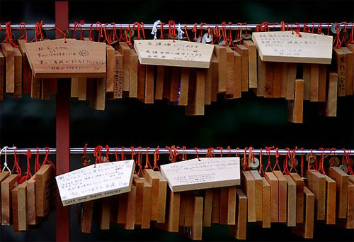 | Bạn có thể ghi những lời cầu nguyện và treo để được thần linh phù trợ. |