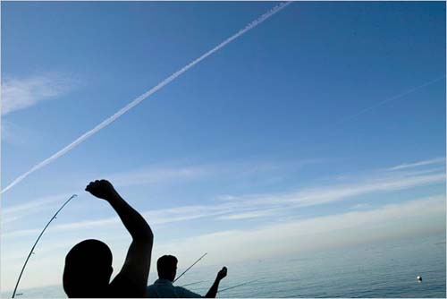 | Khi ánh bình minh dần ló rạng, rất nhiều du khách thích đi câu cá trên biển. |