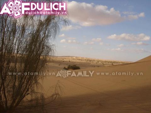 Những lằn xe chơ vơ giữa mênh mông là cát.