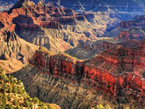 | Grand Canyon (hẻm núi lớn): là một khe núi dốc được tạo ra bởi sông Colrado cắt ra từ hàng triệu năm về trước ở bang Arizona của Mỹ. Độ dài của Grand Canyon 446km, rộng 0,4 đến 24km và sâu hơn 1600 m. |