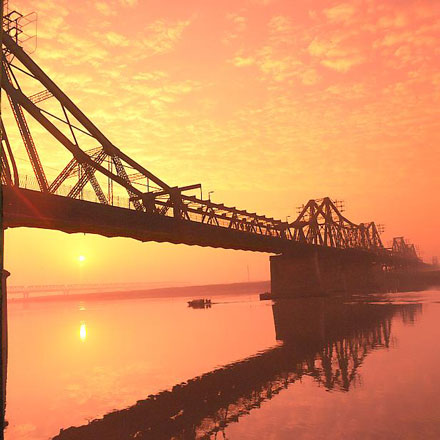 | Cầu Long Biên - nơi các teen hay tụ tập buổi tối mùa hè - bắc qua sông Hồng. |