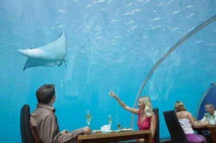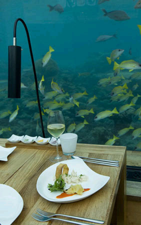 Nhà hàng trị giá 5 triệu USD này nằm ở khu nghỉ dưỡng Conrad Maldives Rangali ở Maldives sẽ cung cấp cho bạn cái nhìn toàn cảnh về cuộc sống dưới biển.