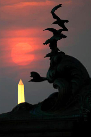 | Ảnh chụp từ đài tưởng niệm chiến tranh thế giới lần thứ II. Nơi đây, vào mùa hè rất đông người đến du lich. Đài tưởng niệm này nằm giữa toà nhà quốc hội và đài tưởng niệm tổng thống Lincoln. |