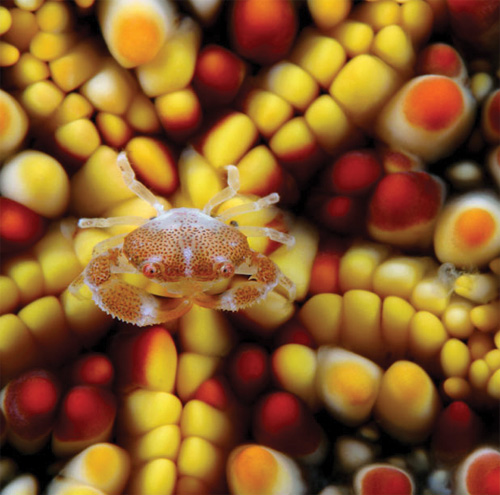 Cua Juvenile nằm trên một con sao biển ở vùng biển Hawaii