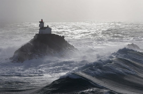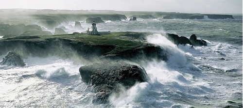 Sóng biển nhảy múa xung quanh ngọn hải đăng Tevennec ở vùng kênh đào Sein, Pháp
