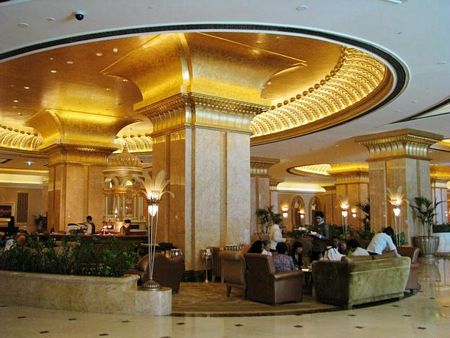 Nhiều khu vực của khách sạn được nạm vàng và đá cẩm thạch.