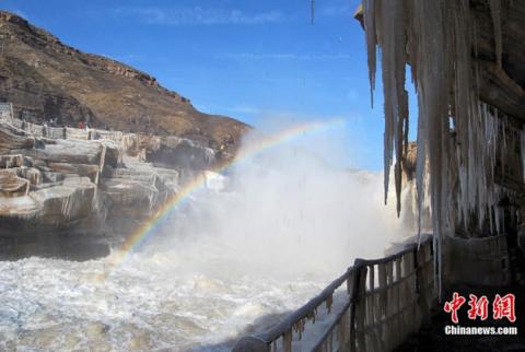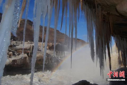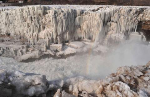 Những cột băng nhọt hoắt, trắng tinh khôi, thác đổ bọt tung trắng xóa, cầu vồng bảy sắc ẩn hiển cùng với núi non trùng điệp, tất cả tạo thành vẻ đẹp thiên nhiên thật lộng lẫy. Chúng ta rất ít khi được chiêm ngưỡng cảnh tượng này, vì chỉ khi một phần thác nước Hukou trên sông Hoàng Hà, tỉnh Thiểm Tây, Trung Quốc, đóng băng mà thôi.