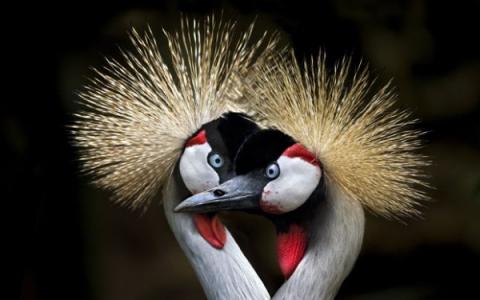 Hai chú sếu thuộc dạng hiếm với chiếc mào trên đầu hết sức đặc biệt.