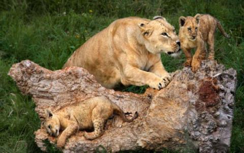 Hình ảnh của một gia đình bình yên, lần này là mẹ sư tử cùng hai nhóc tì đang thong dong vào buổi trưa oi bức.