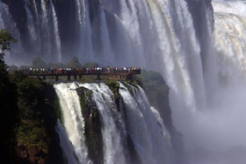Thác Iguza nằm trên đường biên giới giữa hai nước Argentina và Brazil, là kết quả của một vụ núi lửa phun trào để lại một khe nứt lớn trên bề mặt trái đất, dài gần 2km và có hơn 275 dòng thác nhỏ chảy xuống một hồ lớn giữa thung lũng. Cảnh đẹp của thác Iguazu đã từng xuất hiện trong nhiều bộ phim nổi tiếng như Moonraker (1979) James Bond, Miami Vice (2006), Indiana Jones và Vương quốc sọ người (2008). Để có thể quan sát toàn cảnh thác Iguazu nằm ở hai quốc gia, cách tốt nhất là đi trực thăng, máy bay hoặc cũng có thể chèo thuyền ra giữa dòng thác.
