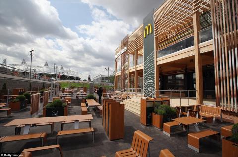 Nhà hàng của tập đoàn đồ ăn nhanh McDonald nằm trong khu liên hợp thể thao Olympic Park ở London (Anh) đã trở thành nhà hàng ăn nhanh lớn nhất thế giới