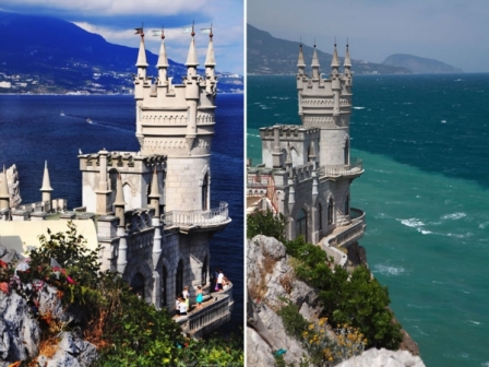 “Lâu đài tình ái” Swallow Nest, biểu tượng của Cộng hòa Tự trị Crimea (Krym), miền nam Ukraina, là một trong những tòa lâu đài lãng mạn nổi tiếng nhất gần Yalta trên vùng biển Hắc Hải được xây dựng từ năm 1912 theo kiểu kiến trúc Gothic hiện đại.