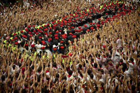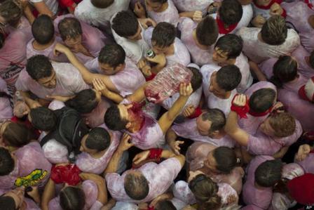 Sau bữa tiệc rượu túy lúy ấy là trò chơi mở màn đầy nguy hiểm: thả bò tót chạy trên đường phố. Sáu chú bò tót đã được thả ra, dưới sự kiểm soát của những người nuôi chúng, chạy như điên trên những con phố hẹp của xứ sở Catalan. Điều kỳ lạ là từ lần đầu tổ chức vào năm 1924, đã có 15 người thiệt mạng trong những cuộc thả bò này, nhưng người ta vẫn cứ làm và người dân vẫn cứ hào hứng tham gia.