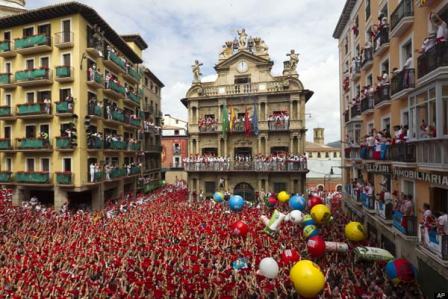 Lễ hội bắt đầu với nghi lễ Chupinazo: nghi lễ tưới rượu vang và nước lên người, mở màn cho 9 ngày lễ hội tưng bừng và say đắm. Những người tham gia bao gồm dân bản xứ và khách du lịch tắm trong làn rượu vang, mặc áo và quần trắng, vẫy những chiếc khăn tay đỏ, biểu tượng của San Fermin. Một bữa tiệc vừa vui vừa... ướt át đã bắt đầu như thế.