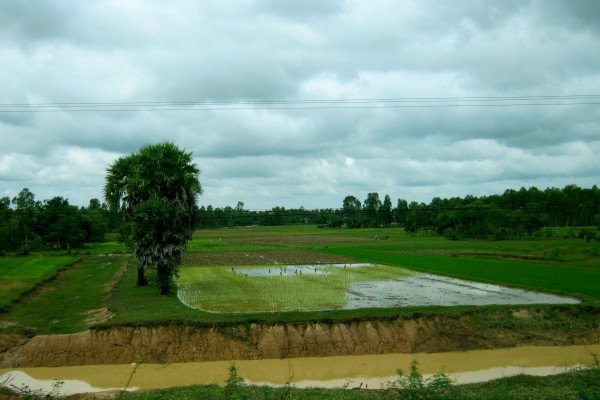 | Đồng lúa, làng mạc ở Campuchia không khác với vùng nông thôn Việt Nam. |