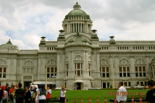 Đoàn du khảo Campuchia-Thái Lan do Tổng lãnh sự quán Thái Lan tổ chức chụp ảnh lưu niệm trước một công trình mang kiến trúc châu Âu trong Đại hoàng cung, Bangkok. Trong ảnh có sự hiện diện của ông Keartisak Aeumsamank (bìa trái hàng đứng), Trợ lý Giám đốc, Tổng cục Du lịch Thái Lan, VPĐD Bangkok. Ông đã ân cần tiếp đón và đi cùng đoàn đến các điểm tham quan trong Đại hoàng cung.