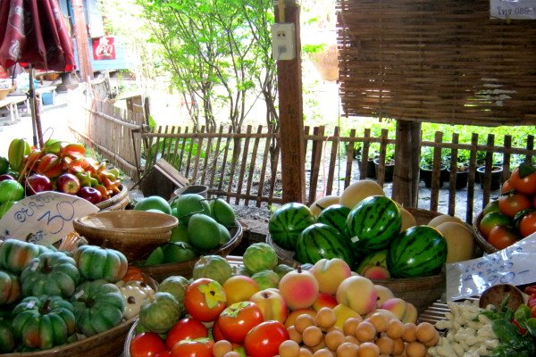 | Hàng trái cây bằng nhựa ở chợ Kong Khong, Ayutthaya. |