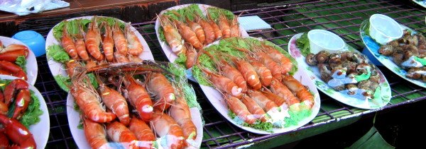 | Các món hải sản ở chợ nổi Ayutthaya. |
