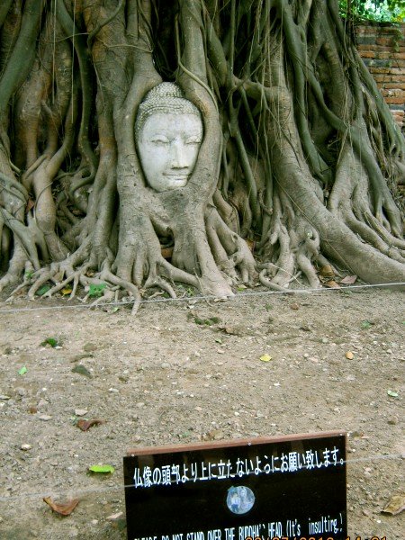 Và xưa kia, có ai đó đã mang đầu tượng đức Phật đặt vào gốc cây sung, trong khuôn viên ngôi đền Wat Mahathat, nơi đã từng diễn ra các nghi lễ hoàng gia, để giờ đây, chúng ta không khỏi ngạc nhiên khi chiêm ngưỡng một tuyệt tác, rất độc đáo - đầu tượng Phật được bao quanh bởi rễ cây cổ thụ to lớn…