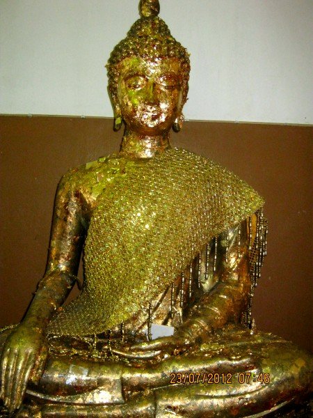 | Tương Phật mạ vàng trong tịnh xá Phrachao Phananchoeng. |