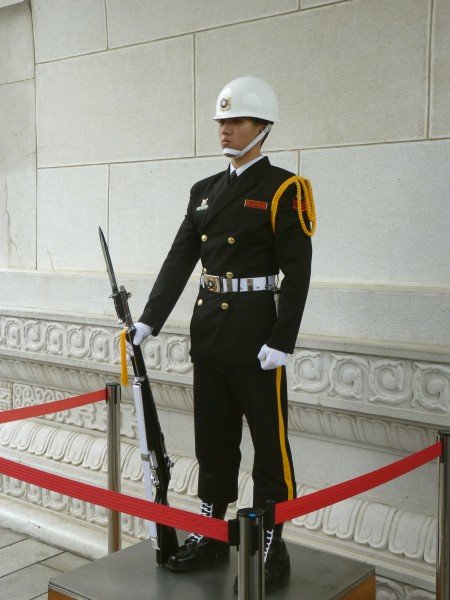 Các binh sĩ đứng gác ở Trung Liệt Từ tay cầm súng gắn lưỡi lê sáng