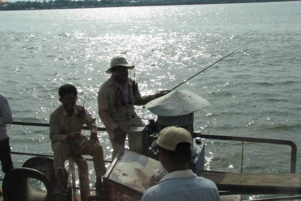 một bến phà vượt sông Tonle Bassac Thượng (dòng chính của sông Mekong