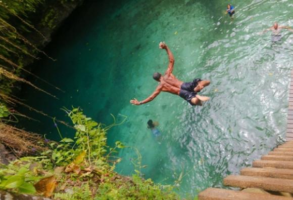 Để giúp du khách xuống được hồ bơi này, các nhà kinh doanh du lịch đã xây dựng một chiếc thang lớn. Khung cảnh kỳ ảo của "hòn ngọc xanh" khiến du khách như lạc vào thế giới thần tiên của những câu chuyện cổ tích.