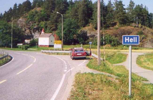 Người sáng lập thị trấn ở tây nam nước này đã đặt tên cho nó là "Hell", tức "Địa Ngục". Nhưng thực tế, trong từ điển Na Uy cũ, "hellir" được dịch là "phần nhô ra". Ở vài nơi khác, Hell còn có nghĩa một trong những nơi lạnh giá trên thế giới. Và thực tế, thị trấn này đóng băng suốt một phần ba thời gian cả năm.