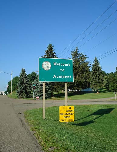 "Tình cờ" là tên một thị trấn ở hạt Garrett, Maryland, Mỹ. Nói về nguồn gốc tên gọi, website thị trấn có ghi sau khi nhận được 600 mẫu đất ở Tây Maryland như một khoản trừ nợ của vua George II - Anh, ông Deaking đã cử 2 nhóm kỹ sư đi khảo sát. Thật tình cờ là cả 2 nhóm này đều lấy mốc bắt đầu và quay về ở cùng một cây sồi. Vì vậy, ông Deaking đặt tên cho thị trấn nhỏ bé là "Tình cờ". Tài liệu khác lại cho rằng tên gọi thực tế bắt nguồn từ chuyện "một vài nơi ở đó rất nguy hiểm, dễ xảy ra tai nạn".