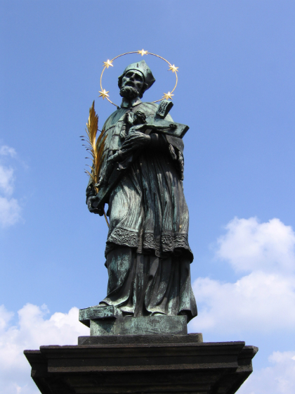 | Tượng Thánh John Nepomuk (Cầu Charles, Prague, Cộng hòa Czech) Bức tượng phổ biến nhất trên cầu Charles ở Prague có lẽ là một tượng Thánh John Nepomuk, một vị thánh tử đạo đã bị người ta thả xuống dòng Vltava từ chính cây cầu nơi bức tượng tọa lạc. Những dòng chữ miêu tả đề dưới bức tượng kể về cuộc đời của Thánh Gioan cùng cái chết của ngài. Bức tượng đã được bàn tay của du khách tứ phương đánh bóng qua nhiều thế kỷ. Chạm tay vào bức tượng thánh John sẽ đem lại may mắn và đảm bảo việc du khách còn trở lại Prague trong tương lai. Ảnh: ramapajama.com |