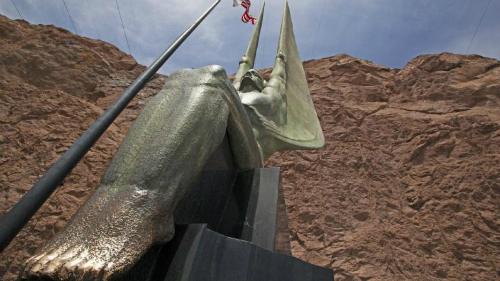 | Tượng Winged Figures of the Republic (Đập Hoover, Nevada, Mỹ) Nằm về phía Nevada của đập thủy điện Hoover là một cột cờ cao hơn 40 m với hai bên là hai bức tượng có tên Winged Figures of the Republic. Công trình này thể hiện sức mạnh của trí tuệ nhân loại, sức bền bỉ của thể chất con người qua quá trình rèn luyện và chiến thắng vinh quang của những thành tựu khoa học. Người dân địa phương đồn rằng xoa tay lên bàn chân của hai bức tượng sẽ giúp mọi người gặp may mắn. Ảnh:travelnevada.com |