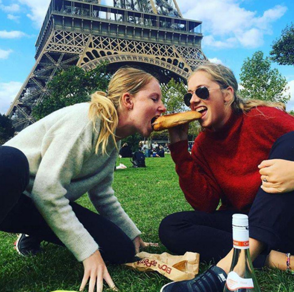 Ngồi dưới chân tháp Eiffel mà ngoạm ổ bánh mỳ 1 USD này thì còn gì bằng.