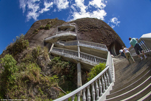 Du khách phải leo tổng cộng 650 bậc thang để lên đỉnh của khối đá khổng lồ.