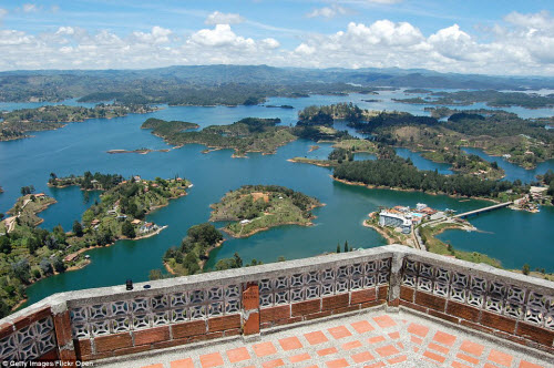 Cảnh hồ tuyệt đẹp được chụp từ trên đỉnh khối đá El Peñon de Guatape.