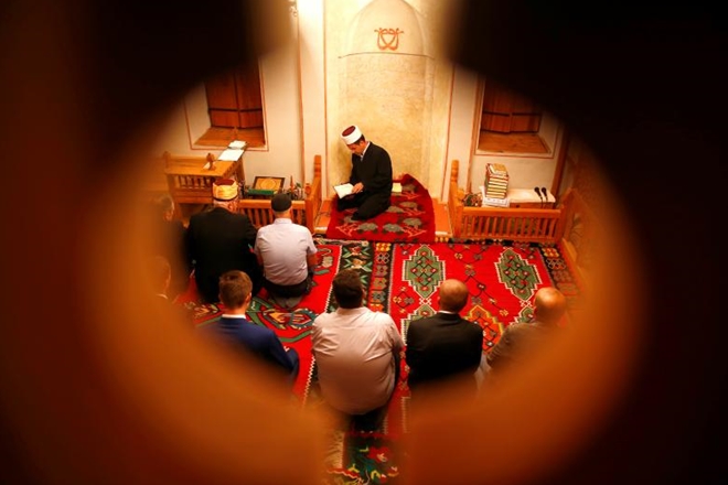 | Người dân Bosnia tham dự một buổi cầu nguyện tại một nhà thờ Hồi giáo ở Kraljeva Sutjeska gần Kakanj, Bosnia và Herzegovina vào ngày 21-8 trong dịp lễ Eid al-Adha. |
