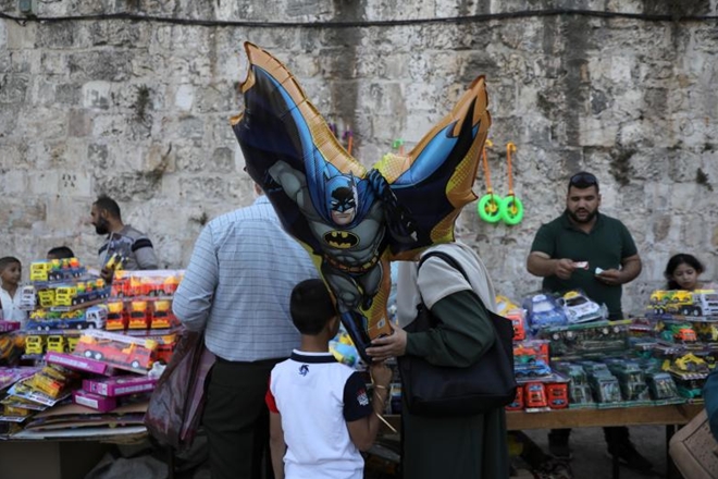 | Những người Hồi giáo Palestine tham quan và mua sắm sau buổi cầu nguyện vào buổi sáng trong ngày đầu tiên của lễ hội Eid al-Adha tại thành phố cổ Jerusalem hôm 21/8. |